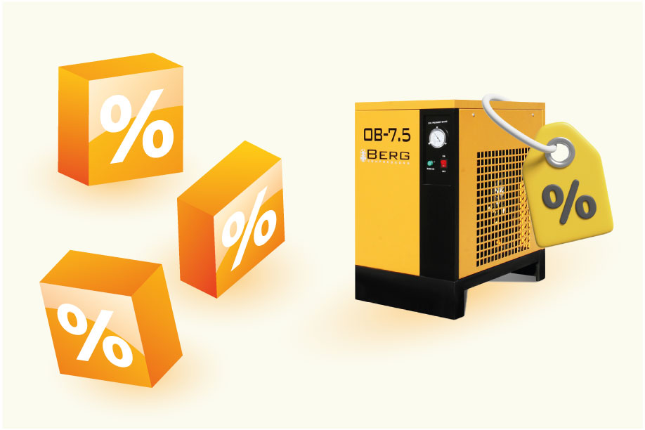 Весна — время обновлять оборудование, а мы запустили акцию на надежные рефрижераторные осушители Berg. Ваш компрессор получит идеально сухой воздух без переплат.
